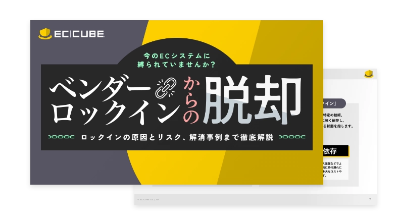 パッケージで構築されたECシステムでは、その改修やメンテナンス等をベンダーに依存せざるを得ない「ベンダーロックイン」の状態に陥り、サイト改善やリニューアルを自由に行えなくなるリスクがあります。サイトを構成する全データを運営者が所有するEC-CUBEなら、その心配がありません。運営管理の内製化や、適材適所で複数ベンダーに委託することもできます。
